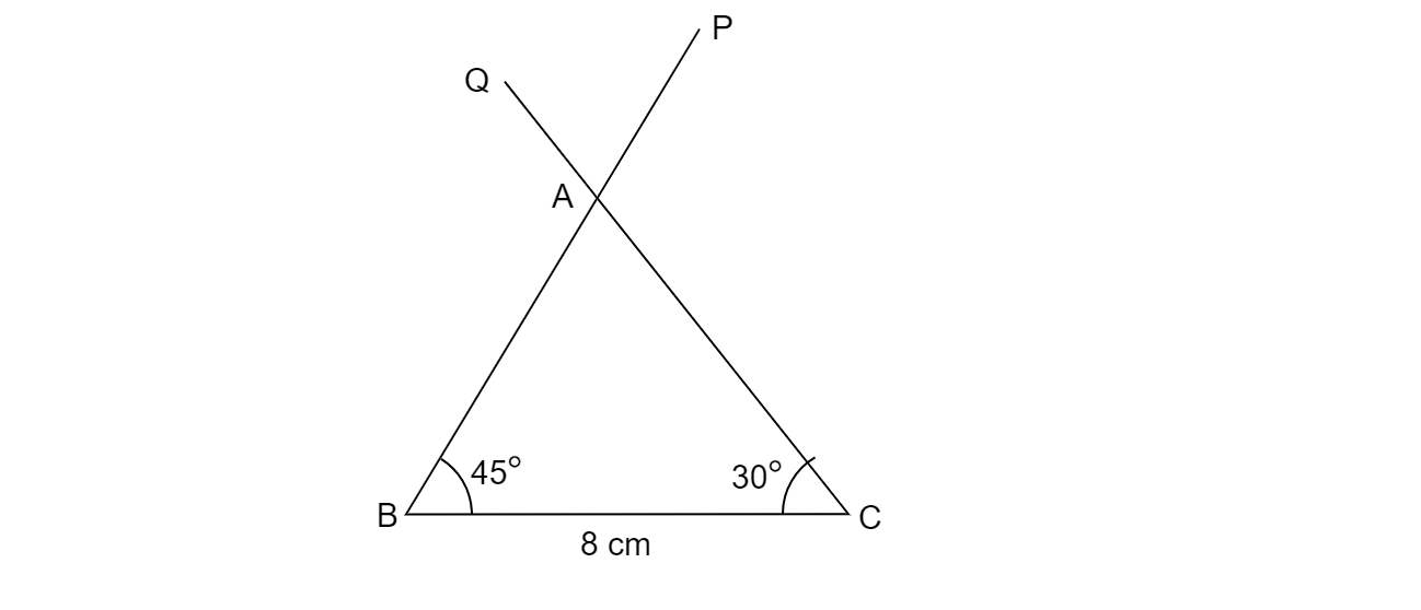 已知:邊$BC=8$ cm,$\angle B=45^{o}$, $\angle C=30^{o}$