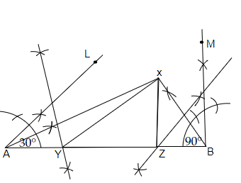 (vii) 現在,我們分別連線 $XY$ 和 $XZ$。因此,$XYZ$ 是所求的三角形。