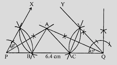 (ii) 在點P處畫一條射線PX,使它與PQ的夾角為60°;在點Q處畫一條射線QY,使它與PQ的夾角為45°。