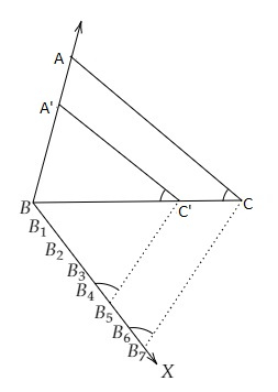 (vi) 從 $B_5$ 作 $B_5C'$ 平行於 $B_7C$,並作 $C’A’$ 平行於 $CA$。