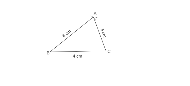 構造一個△ABC,使得AB=6,AC=5釐米,底BC為4釐米。