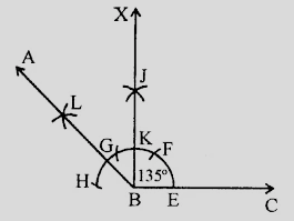 (d) 將弧 $FG$ 平分於 $K$,並將它們連線起來。