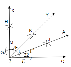 (g) 連線 $B$ 和 $K$ 並延長形成射線 $BY$