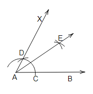 (f) 連線 $A$ 和 $E$ 並延長形成射線 $AE$。