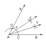 (h) 以 $C$ 和 $F$ 為圓心,半徑大於 $\frac{1}{2}CF$ 畫兩弧,交於 $Y$。