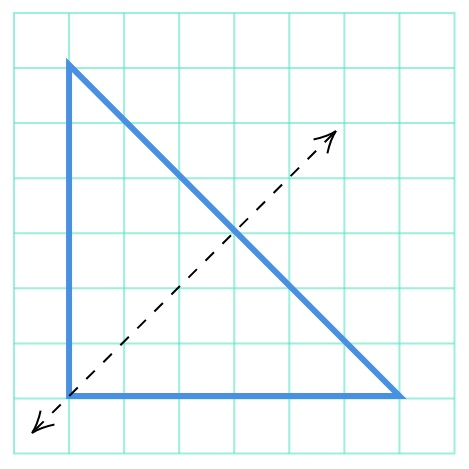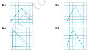 在以下每個圖形的方格紙上覆制三角形。在每種情況下,畫出對稱線(如果有),並確定三角形的型別。