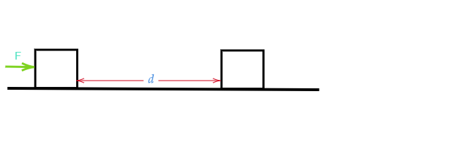 若外力為 $\overrightarrow{F}$,物體產生的位移為 $d$,則該力所做的功 $\boxed{W=\overrightarrow{F}\times d}$。