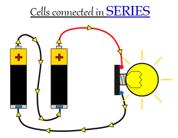 在這種連線方式中,電路中的元件串聯排列,相同的電流流過電路中的所有元件。這種連線中的電流只有一條路徑。