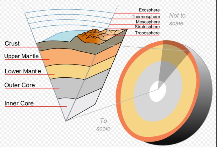 - 下圖是地球剖面圖,展示了地球的不同層級。