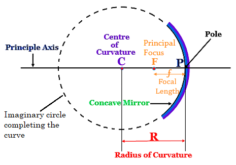 針對球面鏡,定義以下術語:(i)極(ii)曲率中心(iii)主軸(iv)主焦點