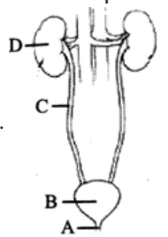 說明:根據以下圖表/圖片回答下面的問題:下圖表示人體排洩系統。識別出儲存尿液的標記部分。
