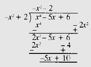 因此,商為 $-x^2-2$,餘數為 $-5x+10$。