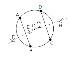 (vi) 因此,$\overline{EF}$ 和 $\overline{GH}$ 分別構成 $\overline{AB}$ 和 $\overline{CD}$ 的垂直平分線,當兩條平分線都延長時,我們可以觀察到它們相交於圓心 $O$。