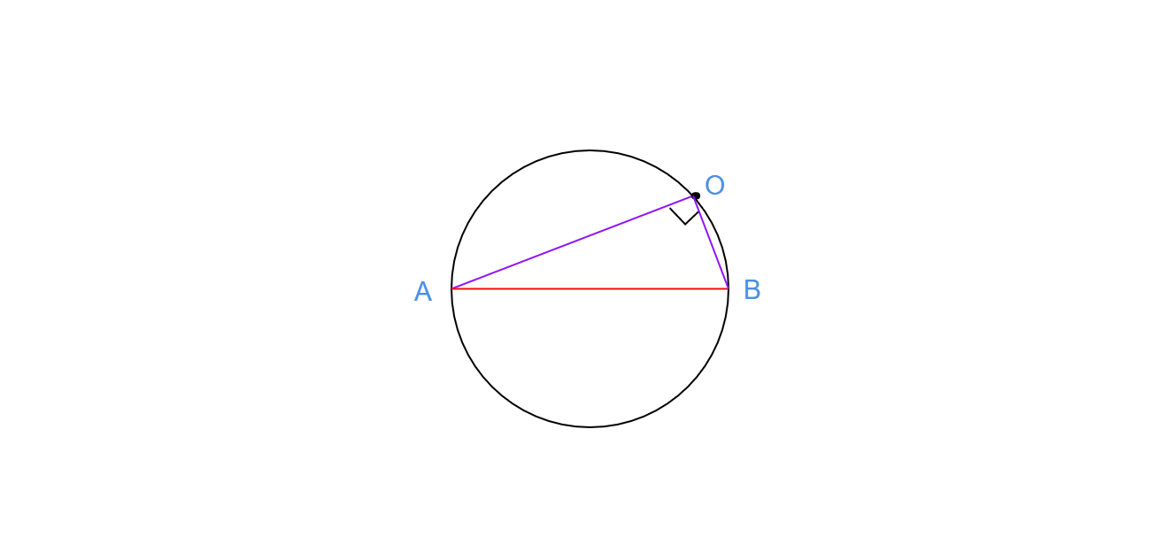 這裡,AB是圓的直徑。它在圓上任意一點O處構成90°角。