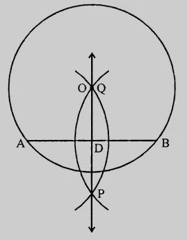 (iv) 連線$PQ$,它與$AB$交於$D$,並經過圓心$O$。