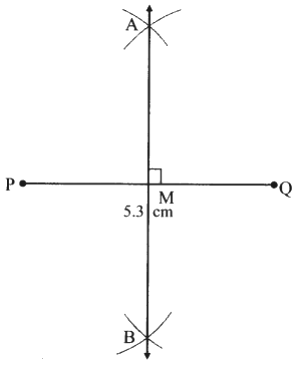 畫一條長度為5.3釐米的線段,並畫出它的垂直平分線。