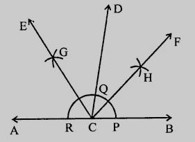 (ii) 畫∠DCA和∠DCB的平分線,形成∠ECF。測量後,我們得到∠ECF = 90°。