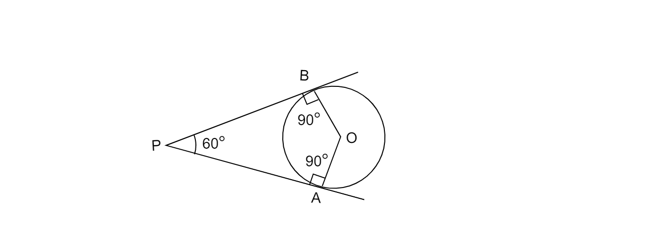 因此,PA 和 PB 是圓的所需的一對切線,它們彼此的傾角為 $60^{o}$。