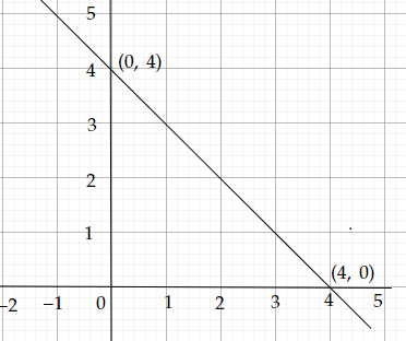 讓我們在方程\(x+y=4\)中代入\(x=0\)和\(y=0\)