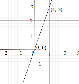 讓我們在方程\(y=3x\)中代入\(x=0\)和\(y=3\)