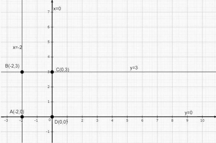 畫出直線 $x=-2$ 和 $y=3$ 的圖形。寫出由這些直線、x軸和y軸形成的圖形的頂點。並求出圖形的面積。
