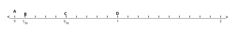 給定的點是 $\frac{1}{10} , \frac{0}{10} , \frac{5}{10} , \frac{10}{10}$。