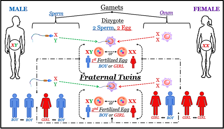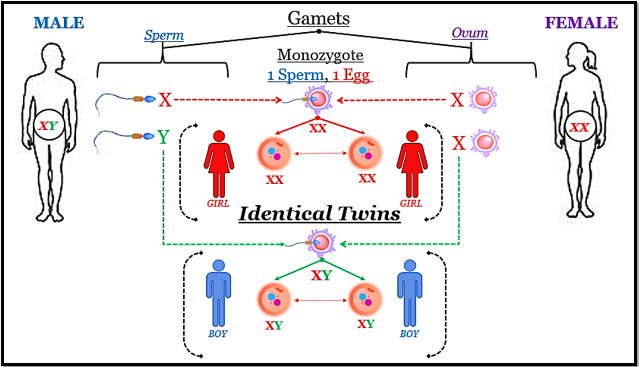 在受精過程中,精子的X或Y染色體與卵子結合,那麼如何解釋出生的雙胞胎性別不同的情況呢?