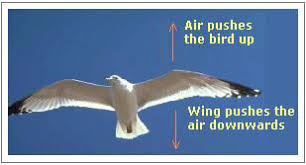 例如 ——如果一隻鳥透過用翅膀推空氣而在向下方向施加一個力,那麼空氣就會用與鳥在向下方向施加的力相同的力將鳥向上推。