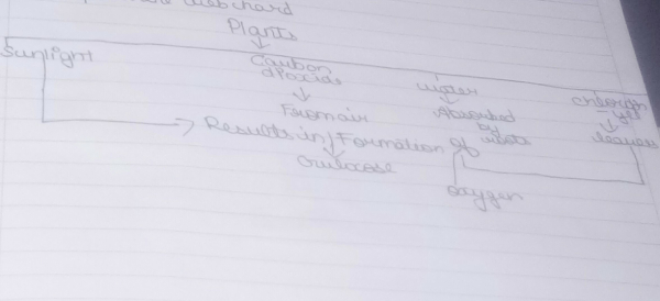 二氧化碳 + 水 + 陽光 -------> 葡萄糖 + 氧氣 (碳水化合物)