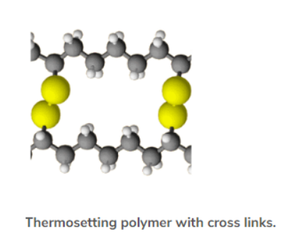 熱固性塑膠是由透過化學鍵連線在一起的聚合物製成的材料,具有高度交聯的聚合物結構。對於熱塑性塑膠,其形狀在冷卻時會硬化,但在再次加熱時可以重新塑形。熱固性聚合物一旦成型,加熱後就不能軟化。它們不能重新塑形。硫化橡膠是一種用於製造輪胎的熱固性聚合物。其聚合物鏈透過交聯連線在一起,因此它們不能輕易地相互滑過。
