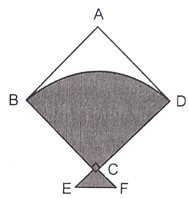 陰影區域的面積 = 四分之一圓BCD的面積 + △CEF的面積