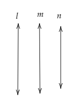 在上圖中,$l \parallel m$ 且 $m \parallel n$。