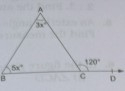 $\angle BAC=3x^o$, $\angle ABC=5x^o$,且 $\angle ACD=120^o$。