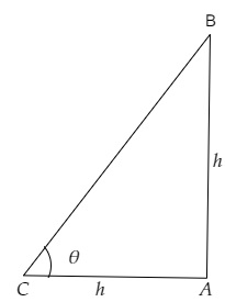設杆的高度為AB=h米,影子的長度為AC=h米。