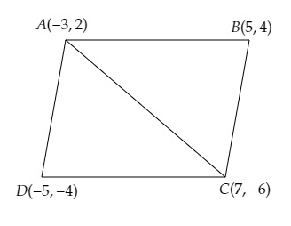 四邊形 $ABCD$ 的頂點為 $A(-3, 2), B(5, 4), C(7, -6)$ 和 $D(-5, -4)$。