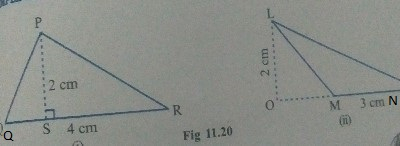 (ii) 在 $\triangle LMN$ 中,高=LO=2 cm,底=MN=3 cm。