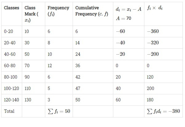 平均數 $=A+\frac{\sum{f_id_i}}{\sum{f_i}}$