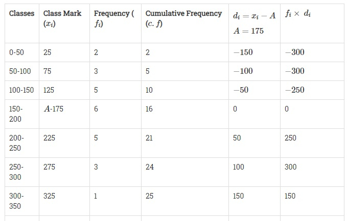 平均數 $=A+\frac{\sum{f_id_i}}{\sum{f_i}}$