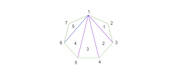 $\therefore$ 七邊形中三角形的個數 = $n-2 = 7-2 = 5$