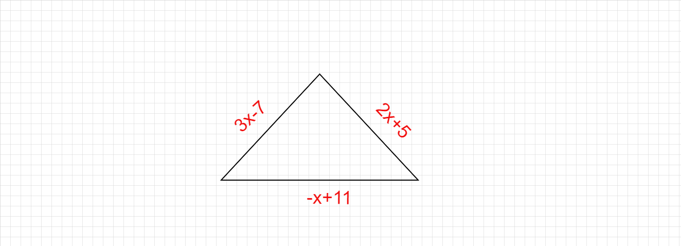 給定三角形的周長 $= (3x-7)+(2x+5)+(-x+11)$