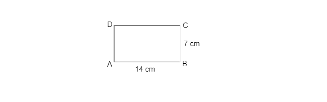 求由旋轉尺寸為 14 cm × 7 cm 的塑膠薄片(如圖所示)形成的圓柱體的體積。(i) 繞 AB 旋轉;(ii) 繞 BC 旋轉。