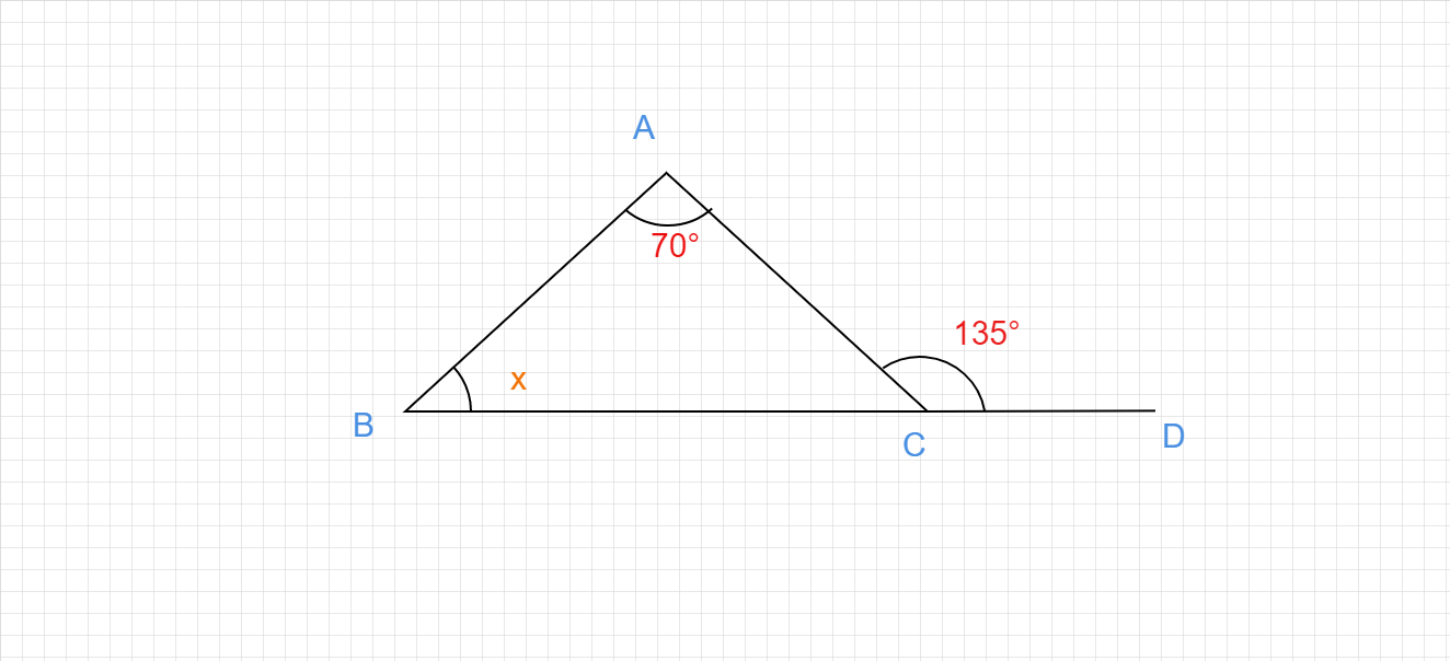 $∠A = 70°$且$∠ACD = 135°$
