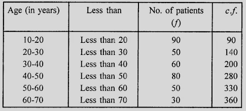 下表是一個累積頻率分佈表,顯示的是某地區居民的年齡。