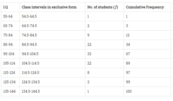以下是100名學生的智商分佈。求智商的中位數。