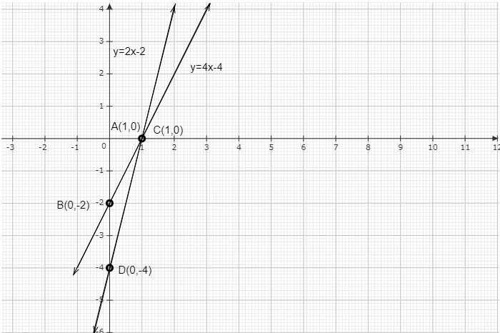 直線AB和CD分別表示方程$y=2x-2$和$y=4x-4$。