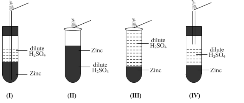 這裡給出了四種裝置,用於確定向鋅粒中加入稀硫酸時產生的氣體。最合適的裝置是: