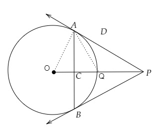 $\triangle OAQ$ 是等邊三角形,$\angle AOQ = 60^o$。
