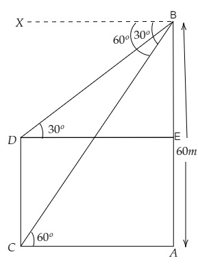 AB=60 m, ∠BDE=30°, ∠BCA=60°