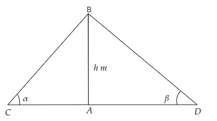 $=h \frac{(\tan \beta+\tan \alpha)}{\tan \alpha \tan \beta} \mathrm{m}$