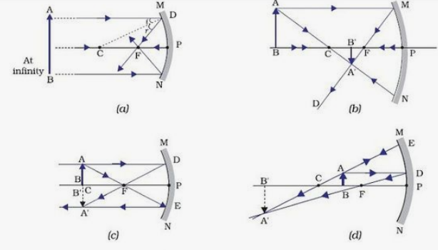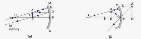 凹面鏡的光線圖如下,適用於物體不同位置。